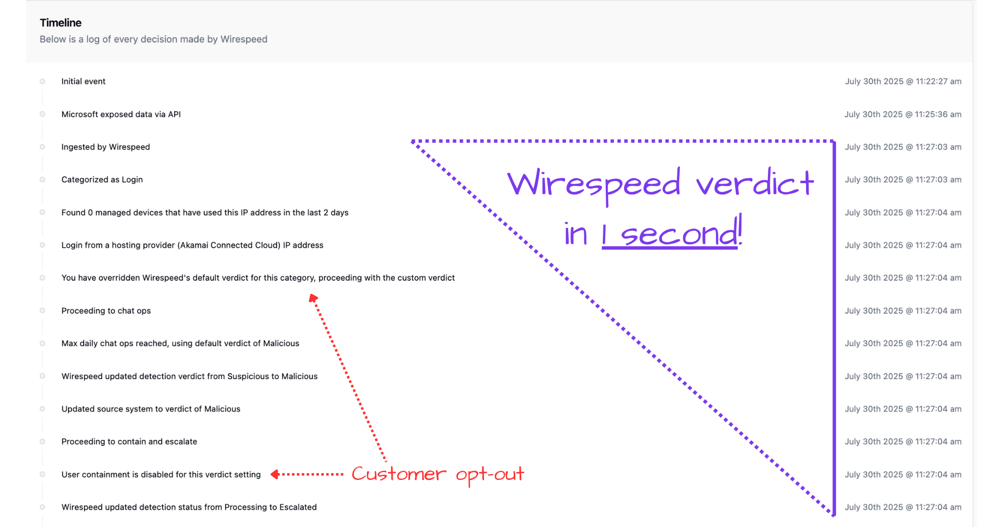 We detected the initial ATO, the session reuse, the mailbox rule creations, all in real-time, but not every client is ready for automated response.
